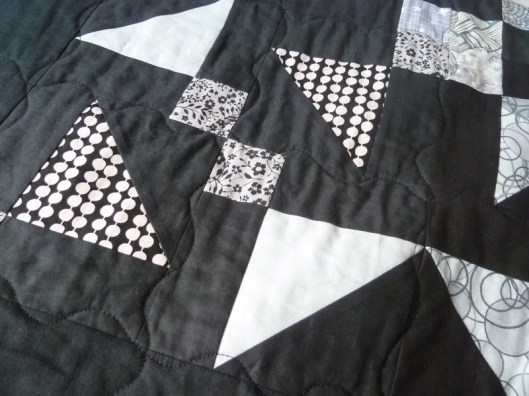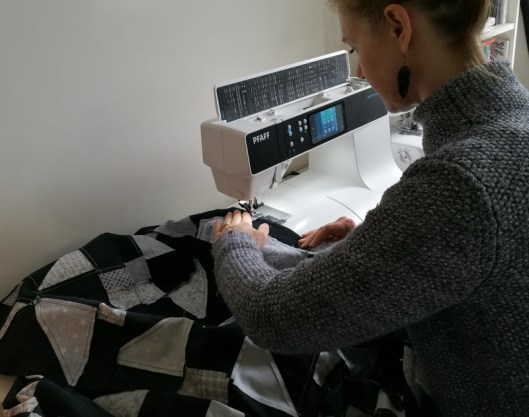 Félicitations pour ce quilt magnifique ! Moi, c’est cette étape qui m’empêche de me lancer dans le Patchwork. Outre ma non maîtrise du piqué libre, je m’interroge sur la gestion de la masse. Lorsqu’il s’agit de piquer le milieu du quilt, ça doit être bien embarrassant tout ce tissu. En tout cas, tu t’en es sorti comme une chef et je le trouve superbe et le choix du point fantaisie, très judicieux !