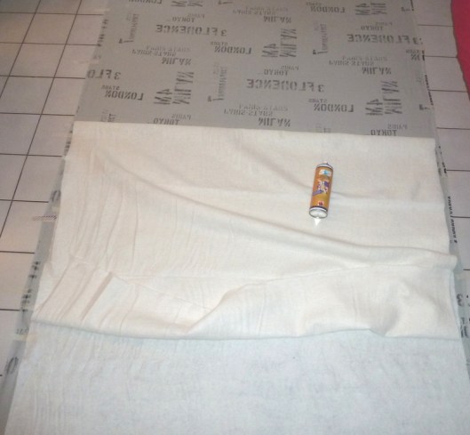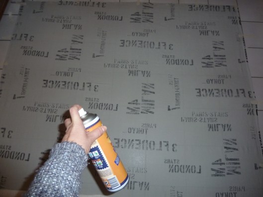 J’ai commencé à pulvériser de la colle en partant du centre puis j’ai positionné le molleton au fur et à mesure en le lissant bien.