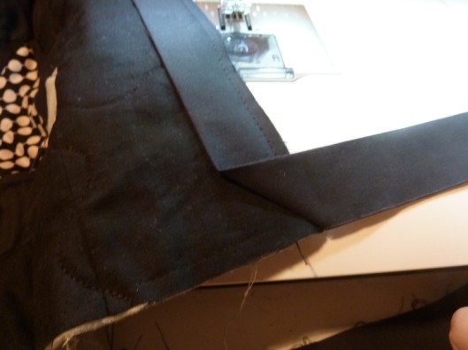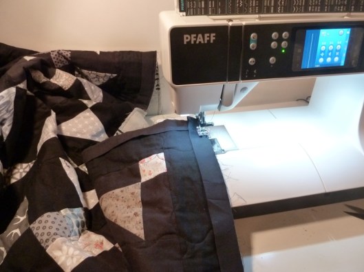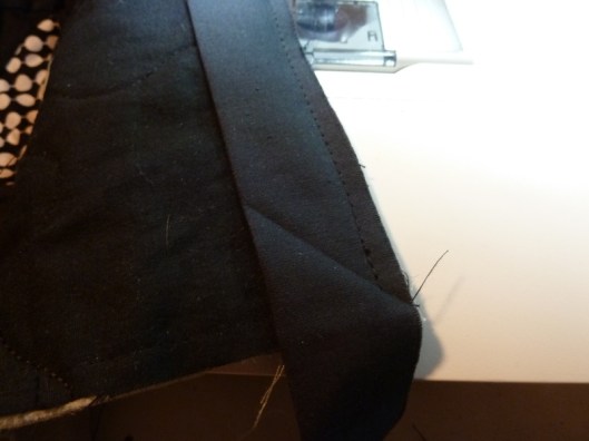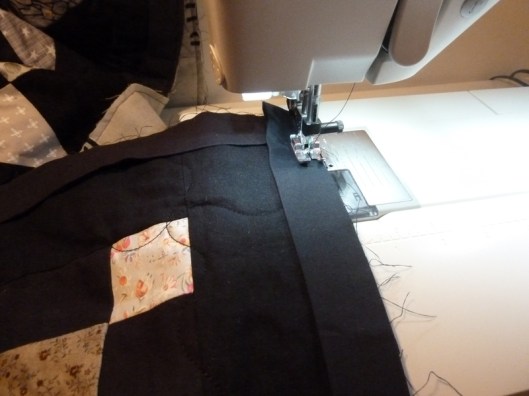 Pour cette partie, j’ai scrupuleusement suivi les indications données par Alice / Blosssom Quilt & craft ! Pour le bais, j’ai donc coupé dans mon tissu noir des bandes de 2,5 inches de large :
