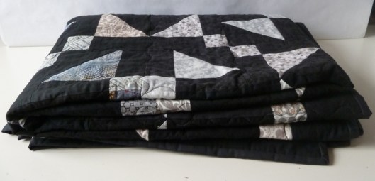 Je suis ravie et fière d’avoir fini ce premier quilt réalisé à plusieurs mains ! Il mesure au final 135 cm X 180 cm.