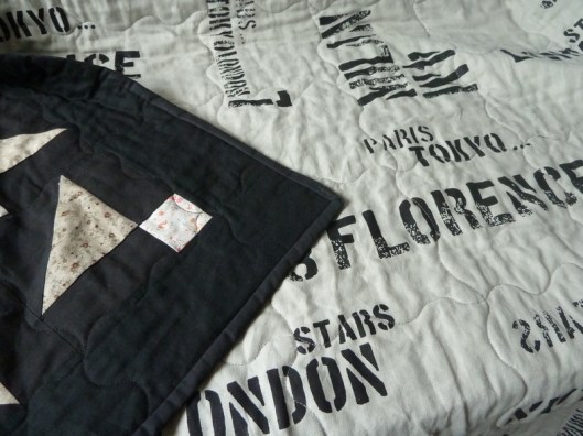 Il s’est passé ensuite de longs mois… Total blocage pour ces étapes « sandwich » et « matelassage »… je ne savais décidément pas comment m’y prendre… Et puis ça m’a pris d’un coup, là tout récemment… Je me suis donc lancée et puis tant pis pour les erreurs, c’est comme ça qu’on apprend ! Pour ce faire, j’ai regardé pas mal de vidéos sur Youtube et plus particulièrement celles de Blossom Quilt & craft qui détaillent toutes les étapes pour coudre un quilt de A à Z ! Merci beaucoup Alice !!!