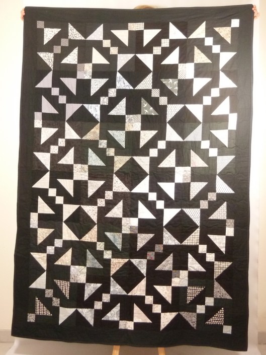 Magnifique ton quilt terminé, et j’aime beaucoup le tissu pour le fond. Bravo !