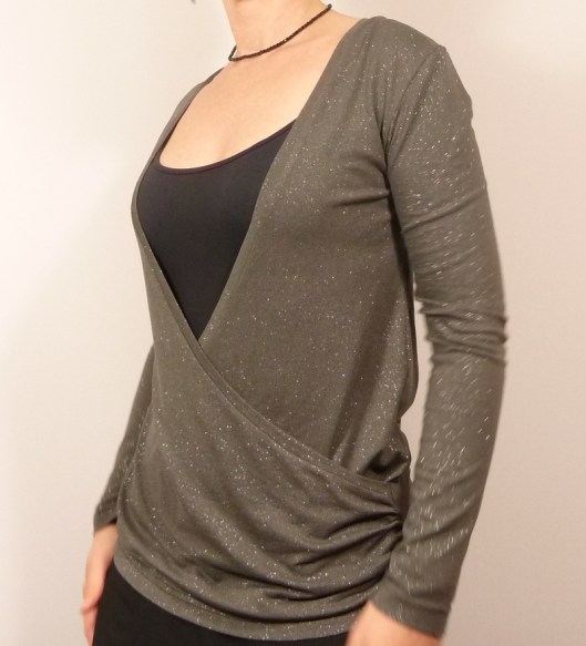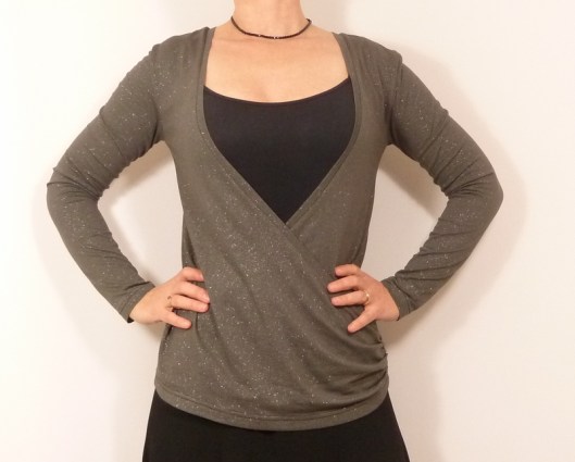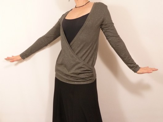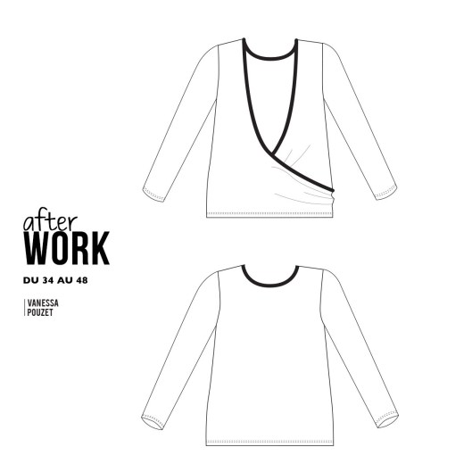Le cache-cœur est drapé et trèèèèèèèèèès décolleté. Les manches sont longues et ajustées. Ce top est à coudre dans un tissu extensible.