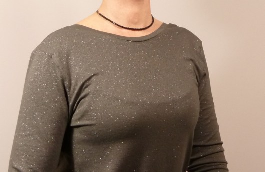 Le résultat est tout à fait concluant. Pour info j’ai raccourci ma bande de 25 cm pour que celle-ci épouse bien le décolleté (tout dépend évidemment de l’élasticité de votre tissu).