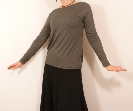 Question tissu, j’ai utilisé les chutes de mon jersey pailleté utilisé pour ma tunique Aldaïa. C’est un tissu acheté 3€ le mètre chez Stop Tissus. Ces deux réalisations seront portées pour aller danser et non pour aller travailler, je vous rassure !