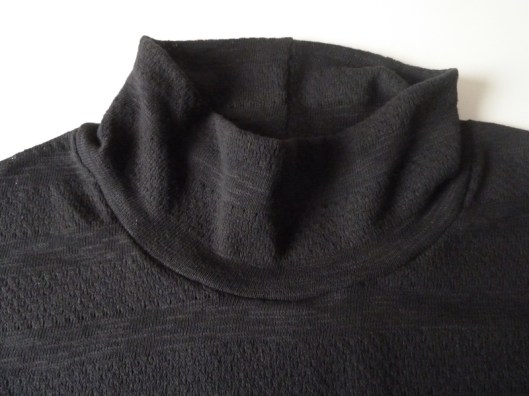 Pour ce qui est du tissu, sachez que le patron est prévu pour du chaine & trame mais ça se coud aussi très bien dans un jersey ou dans une maille, ce qui est le cas ici. J’avais d’ailleurs utilisé ce même tissu pour mon pull Burda cousu récemment.