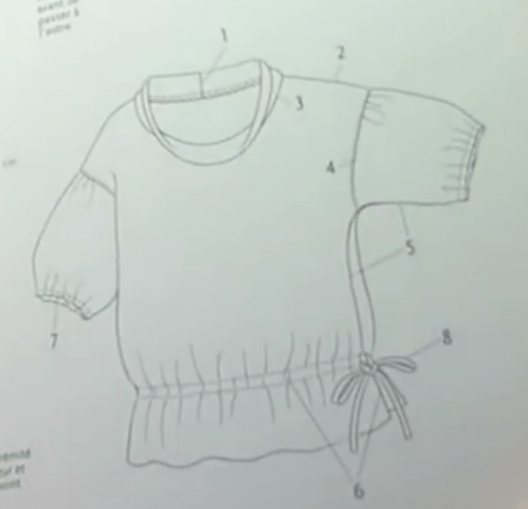 Voici le schéma technique. Comme vous pouvez le constater, j’ai allongé le patron pour en faire une tunique, je n’ai pas mis de lien de serrage et je n’ai pas ajouté les manches.