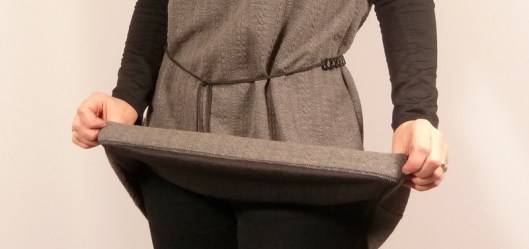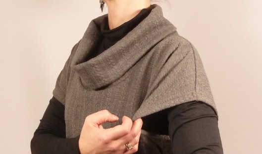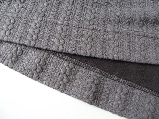 Le tissu étant moins souple et plus épais que ma maille ajourée, le résultat est par conséquent différent mais j’aime bien.