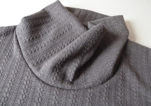 Pour cette seconde version, c’est un jersey de type molleton texturé que j’ai choisi. Je l’ai acheté chez Diffus’laine Tissus de Saint-Nazaire.