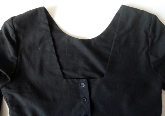 Voici donc d’un peu plus près le décolleté carré boutonné et sa fameuse patte de boutonnage :
