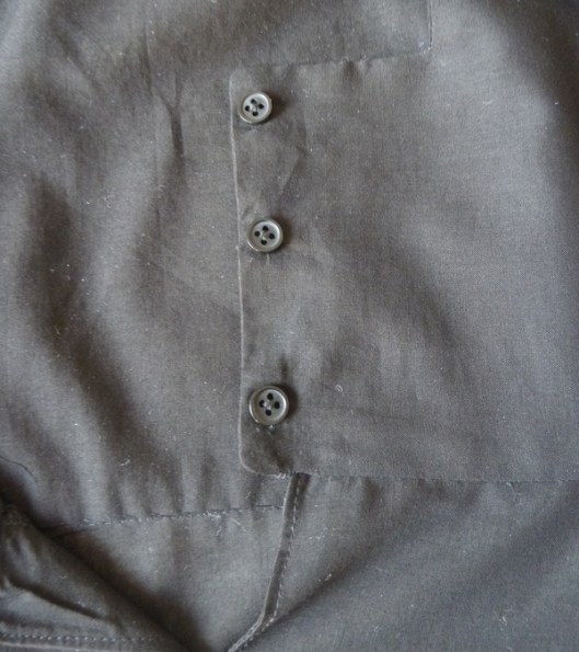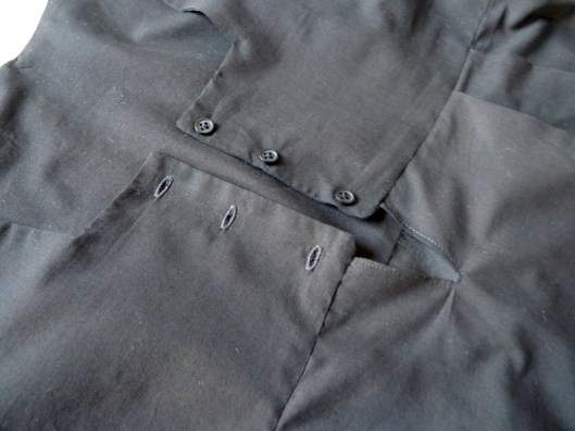Les manches sont longues et finies délicatement par une fente indéchirable et un poignet boutonné que je trouve des plus féminins. Comme vous pouvez le voir ici, je n’ai pas cousu ces poignets…