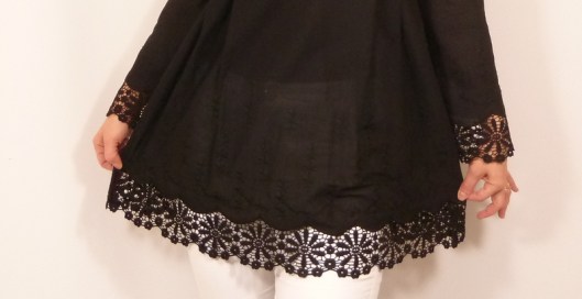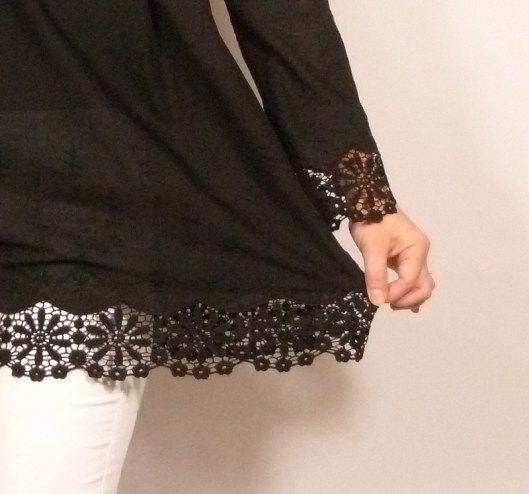 J’ai donc volontairement laissé ces jolis bords en guise d’ourlet, que ce soit pour le bas de la tunique et le bas des manches.