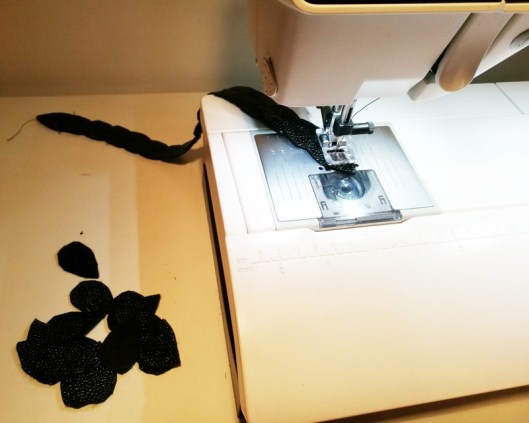 Il s’agit tout simplement de petites feuilles découpées dans du simili-cuir que l’on superpose les unes sur les autres. Pour les maintenir ensemble, il suffit de piquer ces feuilles à la machine :