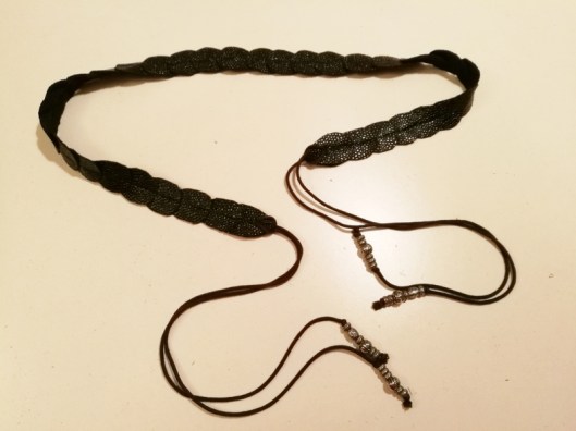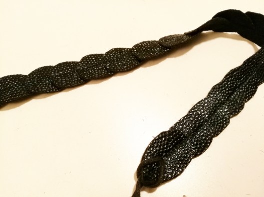Pour terminer cet article, je vais vous parler de ma ceinture à nouer. Je suis littéralement tombée sous le charme de la ceinture dorée réalisée par pauline_polette ! Je m’en suis donc fortement inspirée pour réaliser la mienne.