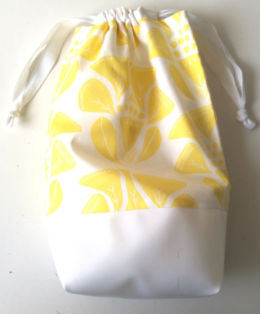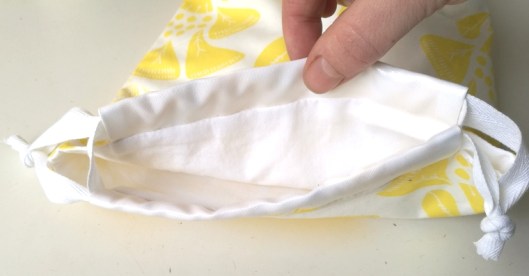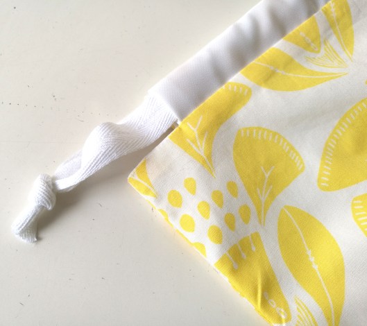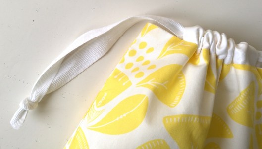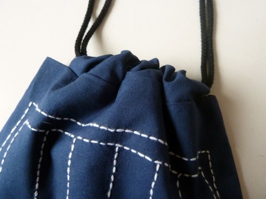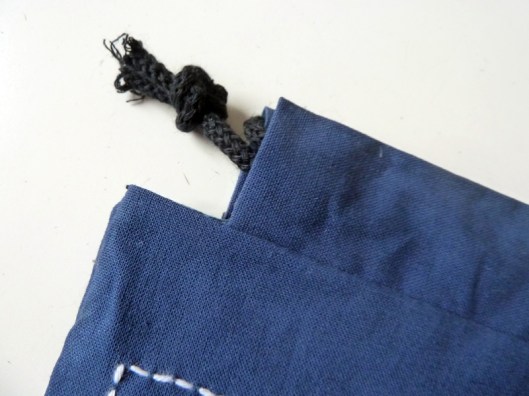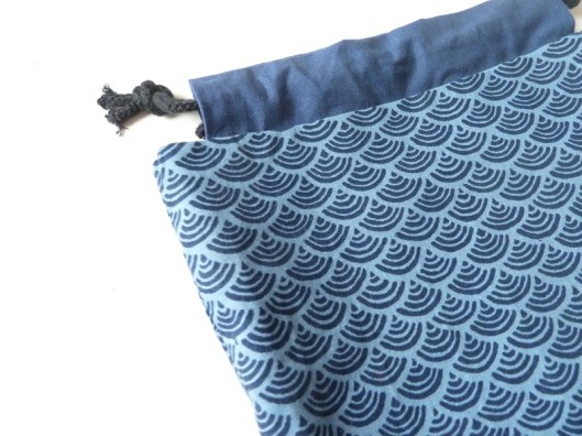 J’ai trouvé cette pochette très sympa : le principe de cette coulisse avec lien à nouer est assez chouette et tellement facile à coudre. Je me suis donc amusée à coudre une pochette en gardant ce même principe :