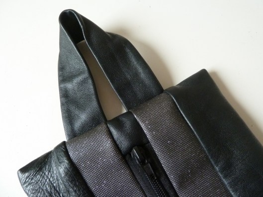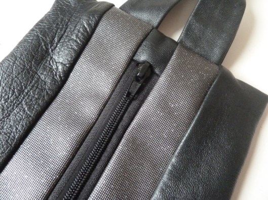 Aux extrémités du zip, j’ai ajouté un petit morceau de cuir, j’aime bien cette finition découverte grâce à Sacôtin :