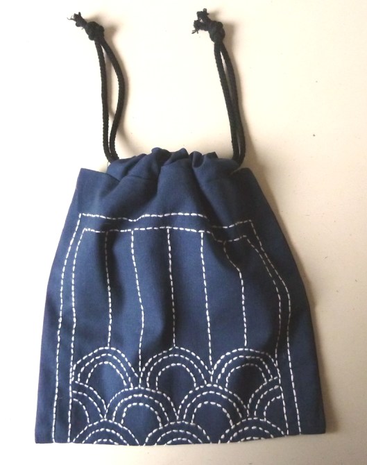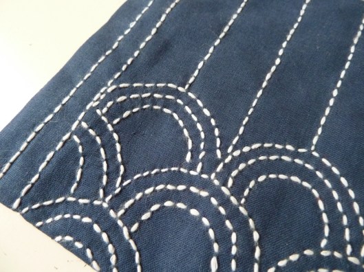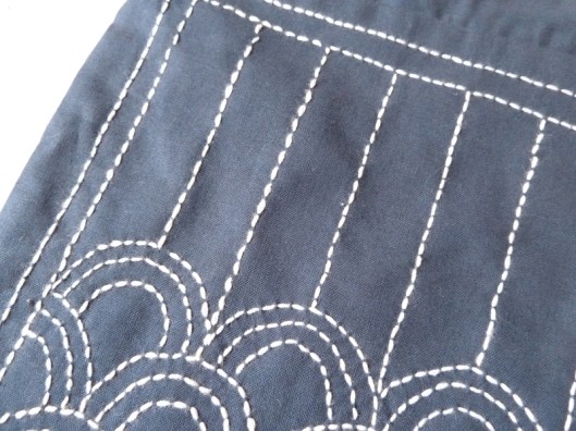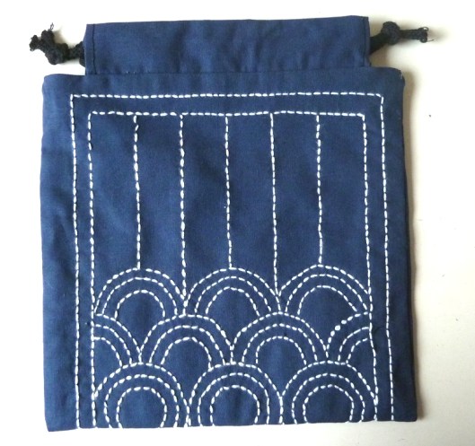 Commençons tout d’abord avec cette pochette brodée avec la technique de la broderie japonaise Sashiko :
