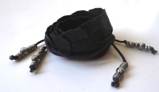 Cette petite pochette se ferme par un lien à resserrer qui passe par des coulisses :