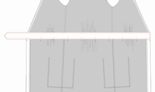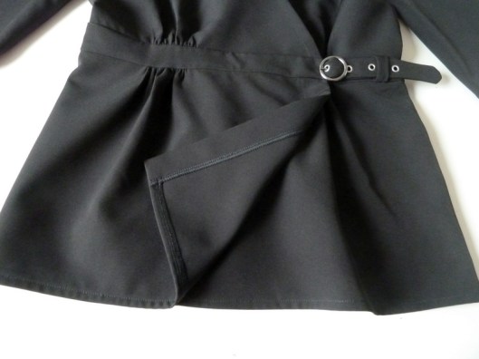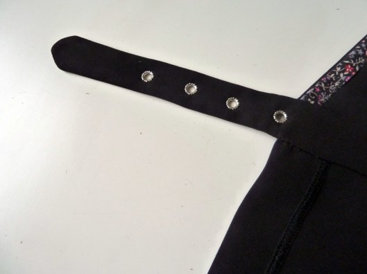 Par manque de tissu aussi, j’ai été contrainte de réduire la hauteur de la ceinture. Ma ceinture est donc plus étroite que celle du patron…