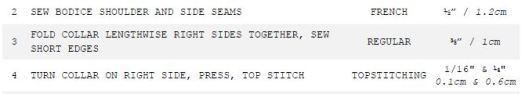 – une page et demie est consacrée aux instructions de montage. Attention, elles sont en anglais et sont succinctes. Une page « Ressources » est toutefois disponible sur leur site internet. Les marges de couture sont comprises dans le patron et elles varient selon l’endroit à coudre.
