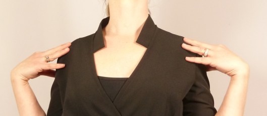 Le col est ainsi pris en sandwich entre le biais et l’encolure :