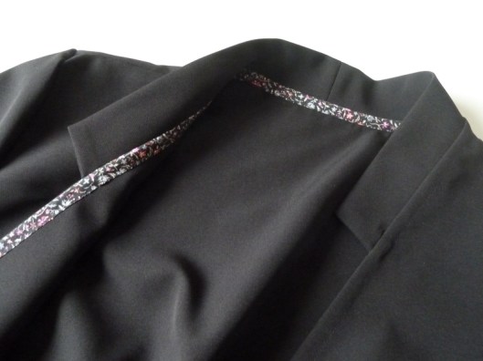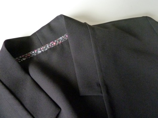 J’ai en revanche suivi les instructions pour le bord de l’encolure qui est fini par un biais.