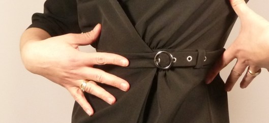 Par manque de tissu aussi, j’ai été contrainte de réduire la hauteur de la ceinture. Ma ceinture est donc plus étroite que celle du patron…