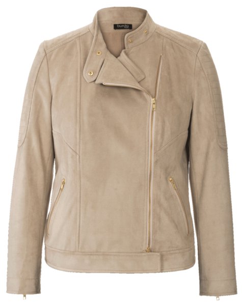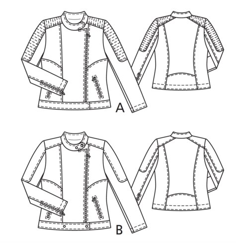 La première est une veste biker avec peplum. Elle est conçue pour les tailles 34 à 42. Vous pouvez retrouver ce patron dans le magazine Burda de décembre 2015 (modèle 108B).