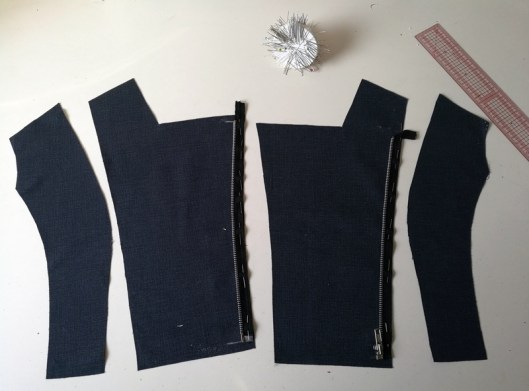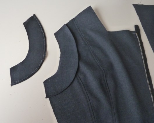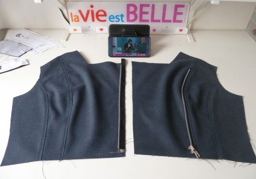 2/ j’ai assemblé toute la doublure (fixée aux parementures que je n’ai pas modifiées contrairement aux indications de la prof)