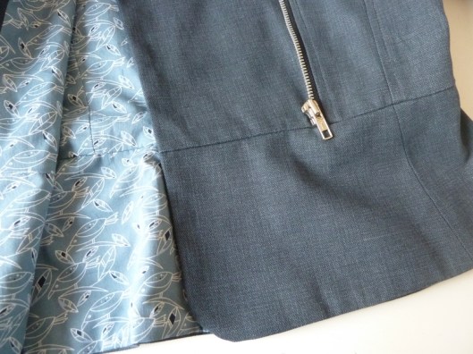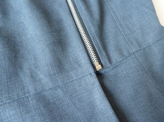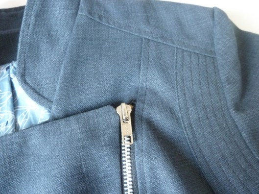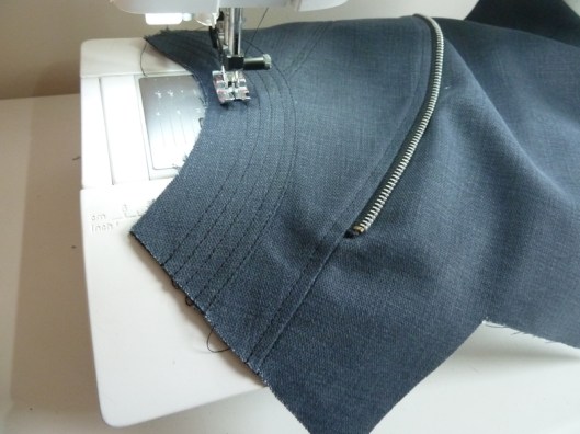 Vient ensuite l’étape du zip. Le professeur explique clairement comment et où coudre le zip et la manière de raccourcir le zip s’il est trop long. J’ai suivi ses explications. Je connaissais la technique grâce à Craftsy pour la réalisation d’une veste du même genre.