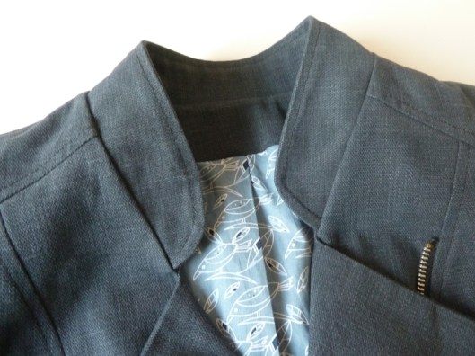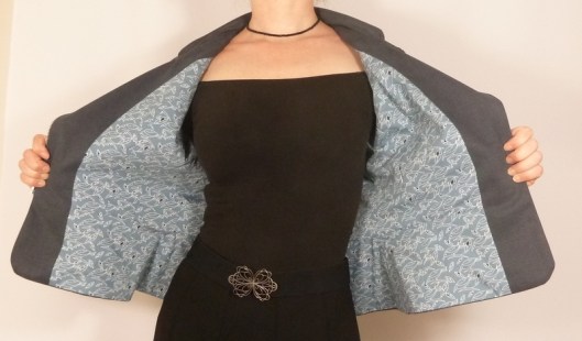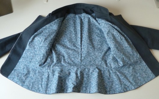 La veste est entièrement doublée. J’ai doublé la mienne avec une cotonnade (diffus’laine tissus) pour le corps de la veste et de la doublure satinée pour les manches :