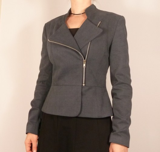je ne suis en général pas du tout fan des vestes style perfecto, mais là j’avoue que bien cintrée et avec la basque, elle est très réussie.