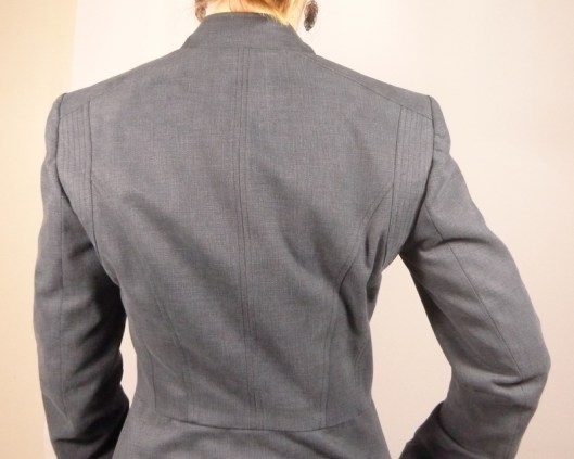 J’ai réalisé ma veste en taille 36 pour mon 36 habituel, je n’ai procédé à aucun ajustement. Vous voyez donc la veste tel que le patron le prévoit et je trouve qu’elle me va plutôt bien.
