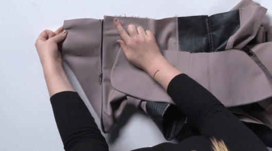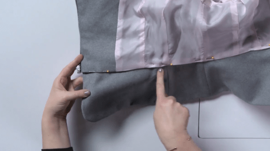 La basque doublée est ensuite ajoutée au corps de la veste :