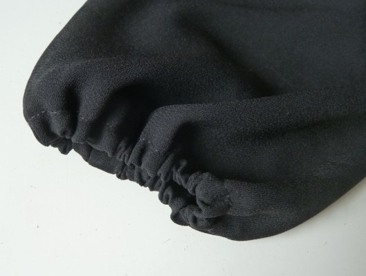 Le bas des manches est bouffant, il est resserré par un élastique au niveau des poignets :