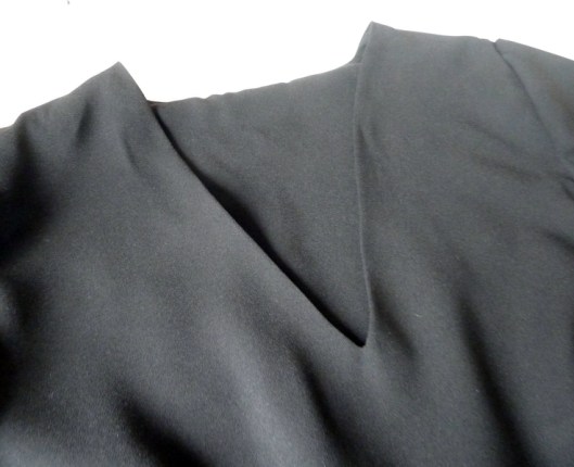 Après plusieurs grossesses, je suis incapable de porter ce genre de coupe…. donc je peux parfaitement comprendre cette sensation de trop grand, trop large, …. mais j’aime beaucoup les colliers de manche au même niveau que la découpe du buste et l’encolure en V.