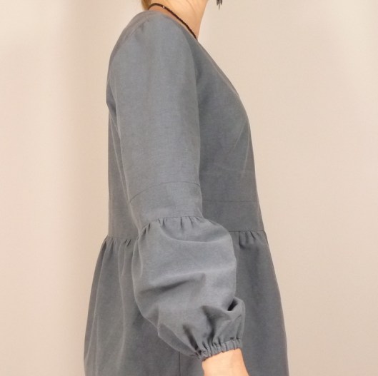Voici la description faite sur le site d’Anna Rose Patterns : « La robe Phoebe est une robe « loose » créée dans un esprit hippie chic. Facile à enfiler avec son corsage volontairement peu cintré et son décolleté en V. Ses jupes froncées apportent un volume romantique, très agréable pendant la saison chaude. Elles sont séparées du corsage par des ceintures pour un côté graphique. On retrouve la même construction au niveau des manches. Le haut de manche droit est suivi d’un bracelet et d’un bas de manche froncé. Un poignet élastiqué crée du volume sur le bas de la manche. Je vous propose deux longueurs pour les jupes: une version robe ou une version blouse. »