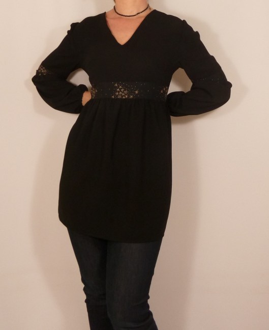 J’ai vais donc la porter un peu, pour voir… Peut-être que cette sensation de flotter dans cette tunique informe disparaitra avec le temps… Sachez qu’il est tout de même fort probable que j’insère un lien à nouer pour resserrer cette tunique, façon taille empire…