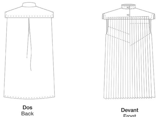 Au dos : un pli creux (petite erreur au passage : sur la pièce du patron, c’est indiqué un pli rond alors que sur le schéma technique et sur le modèle présenté par DP Studio, il s’agit bien d’un pli creux) :