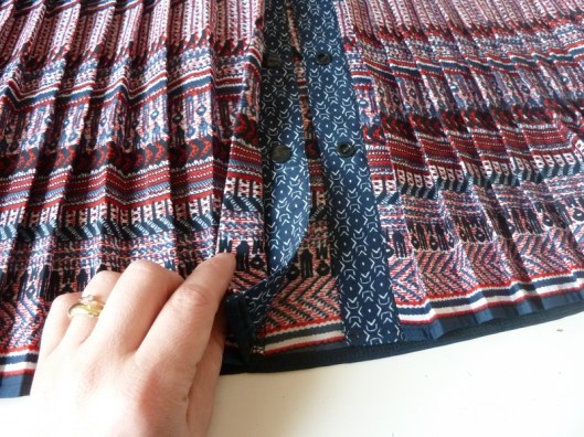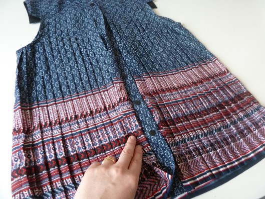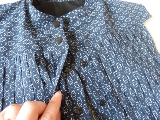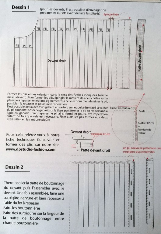 Et là, je vous le dis tout de suite : je suis loin d’avoir compris les explications. Je ne sais pas pourquoi mais dès que je couds des plis je n’ai plus de neurones et je perds alors toute ma concentration… bref… Résultat des courses : je me suis trompée, plantée… appelez ça comme vous le voudrez… je n’ai en effet pas compris comment assembler les plis avec les pattes de boutonnage.