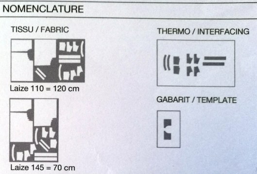 A noter qu’il n’y a pas de tableau récapitulatif des pièces à coudre. Il y a juste cette « nomenclature » (il faut donc prendre chaque pièce pour savoir qui est quoi) :