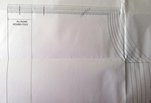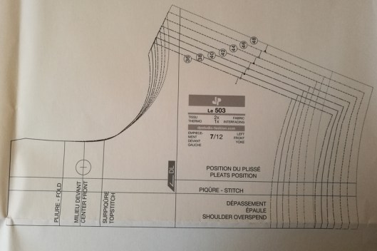 Bref… ce qui m’a surtout gênée dans ces pièces c’est la ligne « pliure ». Je dois bien avouer que je n’ai pas su que faire de cette notion… Au final j’ai fait là aussi comme j’ai pu : pas de pliure sur mon devant gauche et pliure sur mon devant droit, mais il y a clairement quelque chose qui ne va pas…