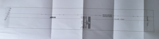 Ce qui m’a perturbé aussi c’est que sur la pièce du patron de la patte du devant droit, il est indiqué une pliure au centre de celle-ci :