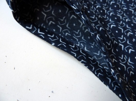 L’ourlet du bas est un simple ourlet surjeté puis surpiqué :
