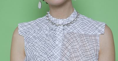 « Cette chemise sans manche, formée sur le devant par des plis maintenus par des galons est du plus bel effet, portée. Il vous faudra un peu de patience pour réaliser cet ensemble de plis, de préférence dans une matière première majoritaire en polyester (cela n’est pas une obligation pour ce modèle, car des galons viennent bloquer l’ensemble de ces plis). Pour le choix des tissus, choisissez des matières plutôt fluides, pour garder de la souplesse à cette chemise, qui doit rester avant tout confortable ».