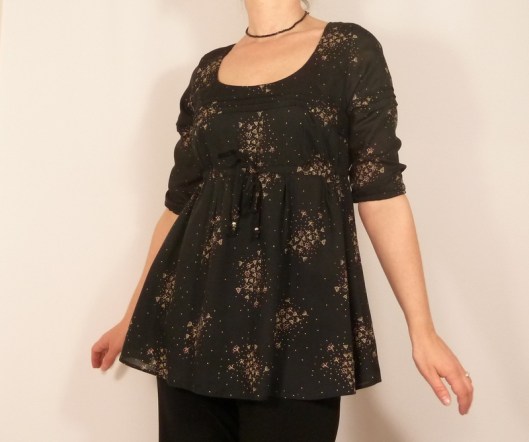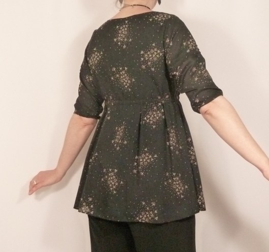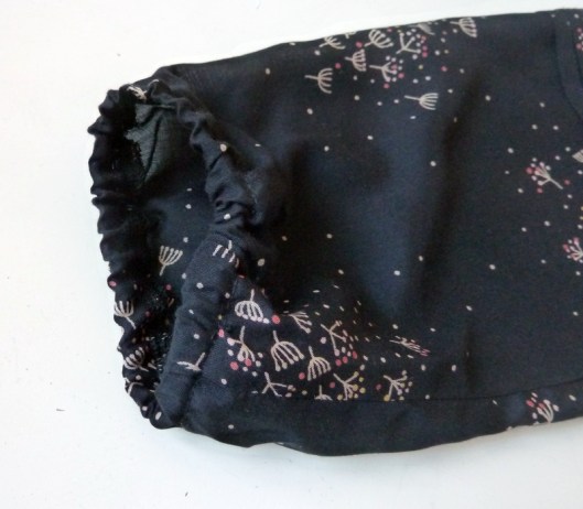 En ce qui concerne les manches, elles arrivent aux coudes, ce que je ne trouve pas très confortable d’autant plus que le bas des manches est élastiqué. A refaire, je crois que je ferais plutôt des manches 3/4 ou des manches longues.