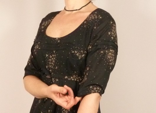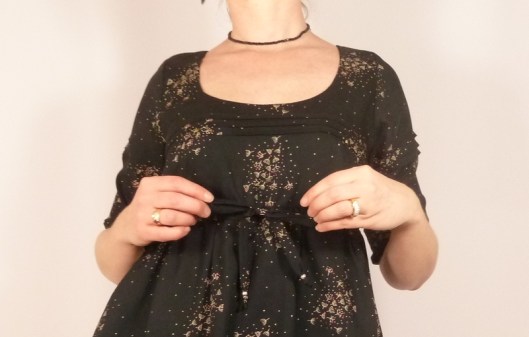 En ce qui concerne les manches, elles arrivent aux coudes, ce que je ne trouve pas très confortable d’autant plus que le bas des manches est élastiqué. A refaire, je crois que je ferais plutôt des manches 3/4 ou des manches longues.
