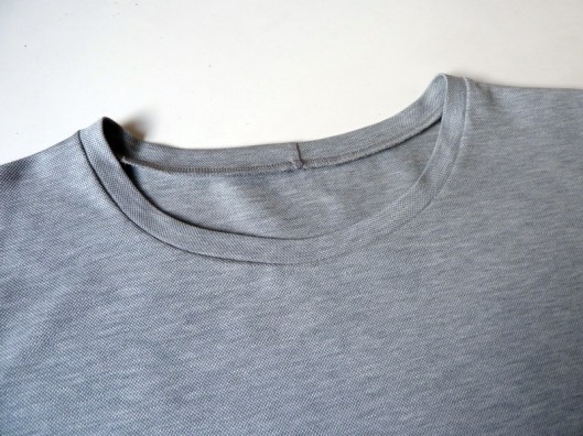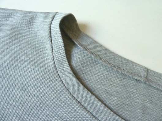 J’ai en revanche effectué une modification concernant les dimensions (longueur) de la bande d’encolure : comme mon encolure baillait, j’ai retiré 2 cm au pli soit 4 cm au total et c’est beaucoup mieux.