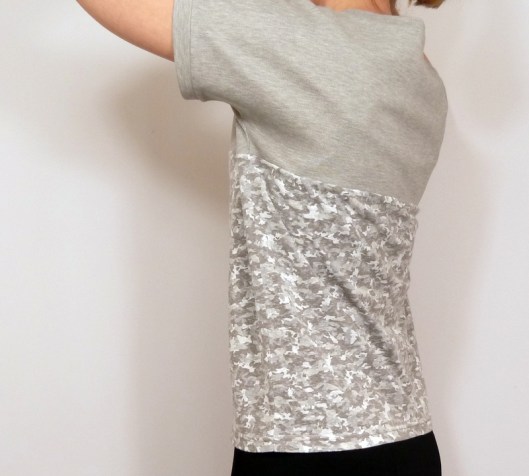 Pour ma seconde version, la partie basse est un jersey de coton tout simple. Du coup, le bi-matière c’est sacrément bien car ça permet d’utiliser ses chutes !