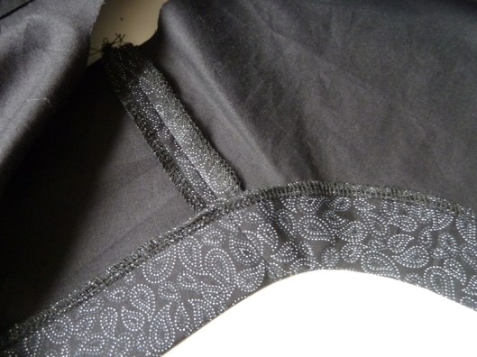 Revenons à présent sur les détails techniques de cette chemise. Les pans du devant sont finis par des parementures : une parementure rapportée d’un côté, une parementure à-même de l’autre. Côté explications LEKALA, les différentes étapes sont expliquées mais restent succinctes. Attention donc : débutantes, évitez ce patron ! Voici quelques photos pour vous donner une idée de ces fameuses parementures :